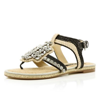 Look 1: Wear your denim shorts with your bright colour top and flat embellished sandals for extra glamour. |