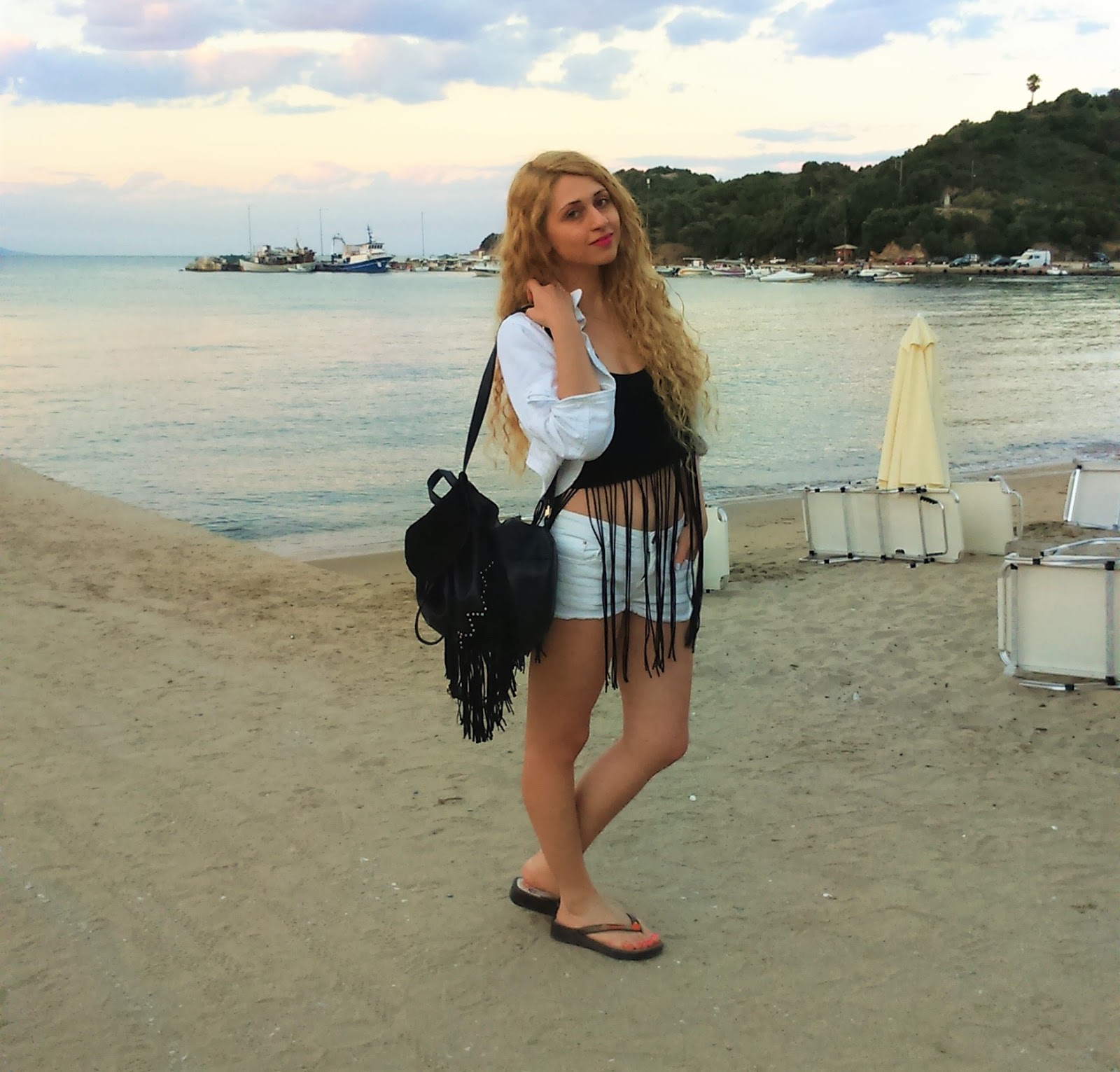 Day 1: At the village 'Olympiada', a picturestue place on the 3rd foot of Chalkidiki..A quiet and peaceful place with crystal, clear sea water. Outfit: Cropped jacket (Mango), Top (Riverisland), Shorts (Zara), Gladiators (Primadonna), Backsack (Accessories)